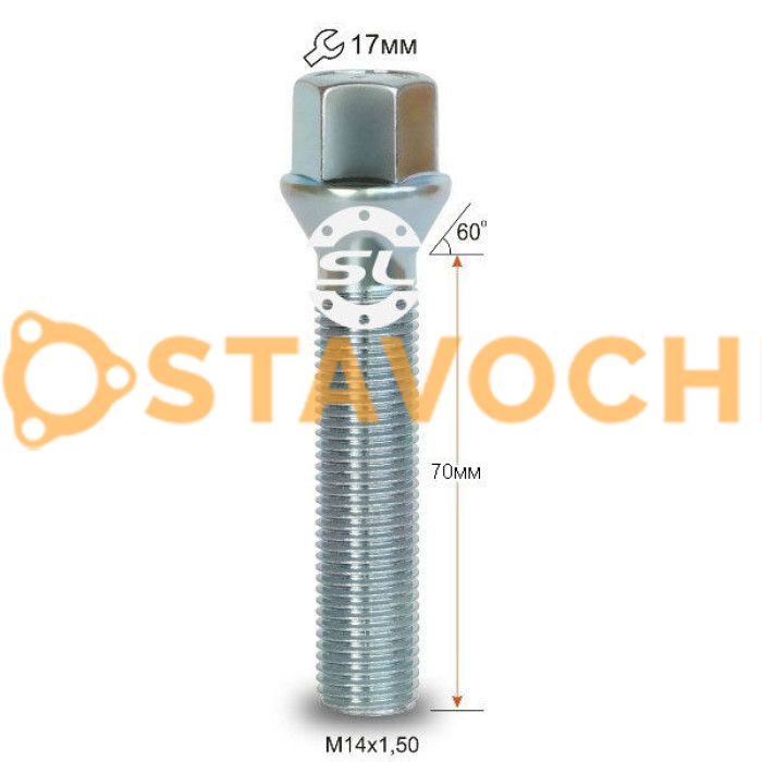 Болт колісний М14x1, 5x70мм Конус Цинк Ключ 17